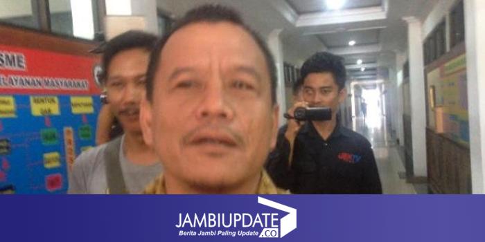 JAMBIUPDATE.CO, JAMBI - Mantan anggota DPRD Provinsi Jambi dari Fraksi Hanura tampak keluar dari ruang Pemerintah yang berada di lantai dua Mapolda Jambi, Kamis (21/3).