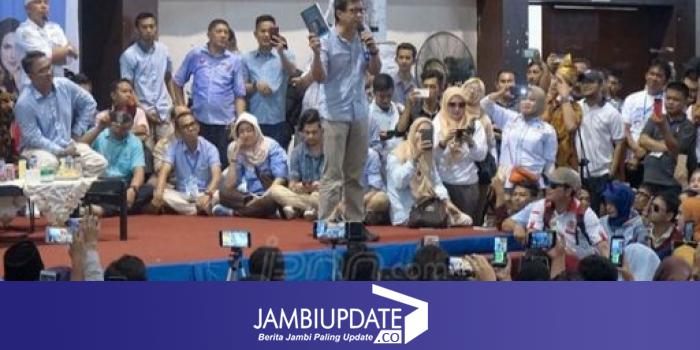 Lokasi acara yakni GOR Tribuana Pekanbaru dipenuhi ribuan pengunjung yang didominasi mahasiswa dari berbagai universitas Riau. Kedatangannya disambut dengan salam dua jari dari para pendukung pasangan capres cawapres nomor urut 02, Prabowo-Sandi.