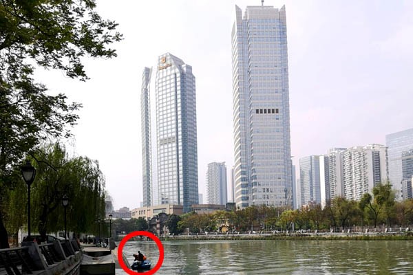 di Kota Chengdu. Foto Atas: Kapal pembersih sungai di Chengdu.