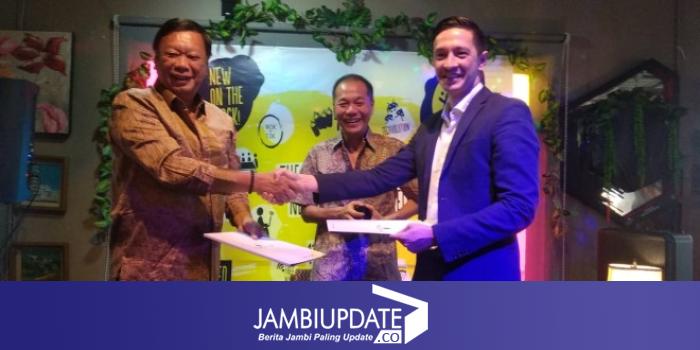 JAMBIUPDATE.CO, JAMBI - Konfirmasi kehadiran YELLO Hotel di Kota Jambi diresmikan melalui upacara penandatanganan MoU (Memorandum Saling Pengertian) dengan melibatkan dari TAUZIA International Management dan PT. Rajato Mitra Sentosa Hotelindo yang diadakan di Restoran Casa De Alicia Kamis, (11/4).