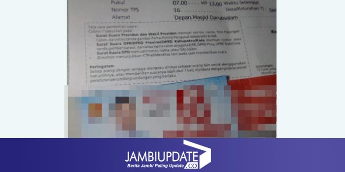 Untuk diketahui, oknum ketua RT tersebut di OTT saat membagikan undangan untuk memilih ke TPS di depan kantor luar Simpang IV Sipin, Kota Jambi, Senin (15/4).(cr3)