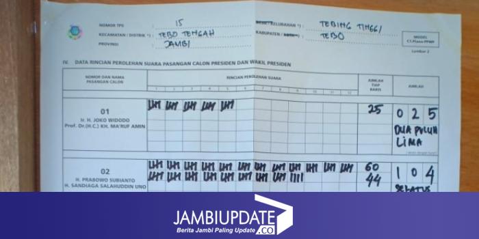 Prabowo Menang Telak di TPS Bupati dan Wabup Tebo.