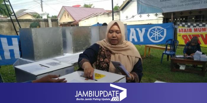 Bupati Masnah nyoblos di TPS 22 Kelurahan Pakuan Baru Kecamatan Jambi Selatan Kota Jambi yang berada tak jauh dari lokasi kediamannya. Sewaktu pencoblosan Bupati Masnah