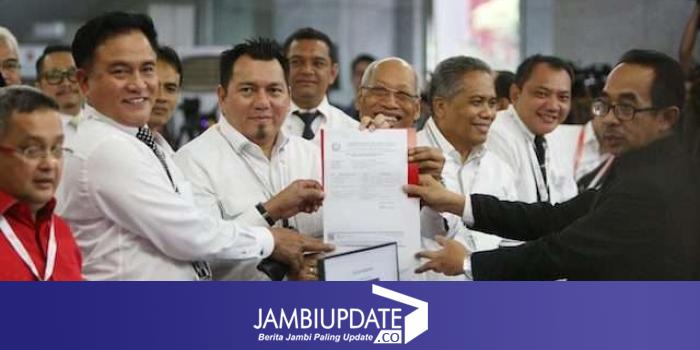 Ketua tim hukum TKN 01 Yusril Ihza Mahendra kembali menyerahkan sejumlah dokumen kepada paniter. Dokumen tersebut merupakan tanggapan yang digugat oleh kubu 02 Prabowo-Sandi.