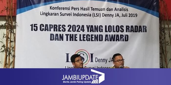 JAMBIUPDATE.CO, JAKARTA - LSI Denny JA merilis 15 nama kandidat capres di Pilpres 2024 mendatang. Mereka yang masuk dalam radar kandidat capres memiliki tingkat popularitas minimal 25 persen.