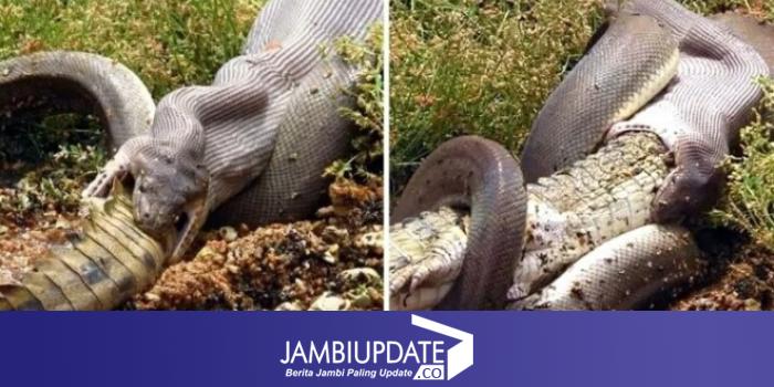 JAMBIUPDATE.CO, QUEENSLAND Anda mungkin pernah melihat gambar binatang yang memakan hewan lain sebelumnya. Tapi kami yakin Anda tidak akan sering menemukan ular piton menelan buaya air tawar dewasa secara bulat-bulat.