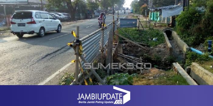 Pantauan sumeks.co, Ahad (14/7), parit besar tersebut berada di sebelah kiri jalan dari arah kota menuju Km 12. Petugas Dinas Perhubungan Palembang hanya memasang seng dan sejenis garis polisi sebagai rambu peringatan di sepanjang parit besar tersebut. Rawan kecelakaan jika hujan di malam hari. Sebab penglihatan berkurang.