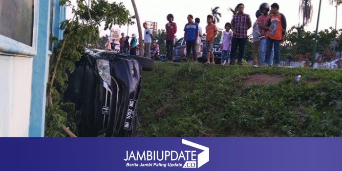 JAMBIUPDATE.CO, JAMBI - Kecelakan tunggal kembali terjadi di Kota Jambi. Kali ini giliran satu unit mini bus jenis Honda CRV marna hitam dengan monor Polisi BH 1052 MG yang mengalami kecelakaan.
