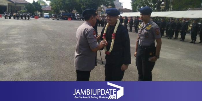 Kedatangan ratusan personel Brimob dirangkai dengan Apel penyambutan yang di pimpin langsung oleh Kapolda Jambi Irjen pol Muchlis.