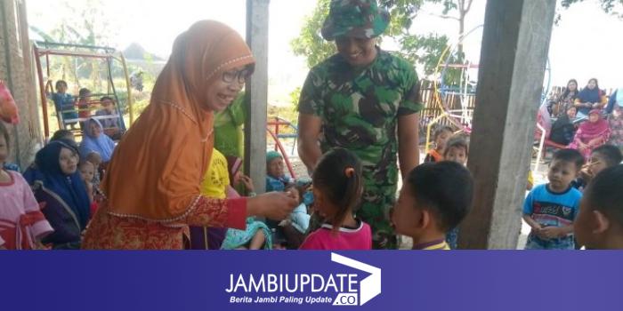 Sambil memantau ketersediaan material untuk pembangunan fisik TMMD, keduanya menyempatkan untuk beranjangsana ke TK Pertiwi II, Desa Kalikondang, untuk memberikan motivasi anak-anak ti TK itu, sekaligus memperkenalkan TNI.