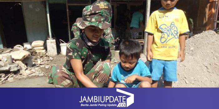 JAMBIUPDATE.CO, DEMAK - Meski bukan tuga wajib saat ditugaskan di lokasi TMMD Reguler ke-105 Kodim 0716/Demak, namun Sertu Agus, anggota Satgas dari Yonif 410/Alugoro ini, terpanggil untuk melakukan hal-hal positif bagi warga desa sasaran, Desa Kalikondang, Kecamatan Demak Kota (desa sasaran TMMD -Red)