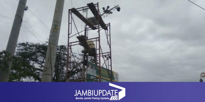 Petugas Dishub Batanghari saat memasang kamera CCTV di simpang.