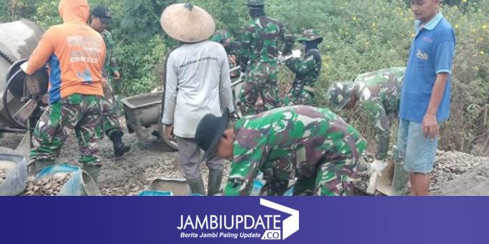 Tampak puluhan anggota Satgas TMMD bersama warga bahu membahu, saling berbagi tugas di pekerjaan tersebut. Dua tukang handal dari TNI, masing-masing Sertu sarmidi dan Sertu Doni, keduanya dari Yonif 410, diterjunkan ke lokasi itu.