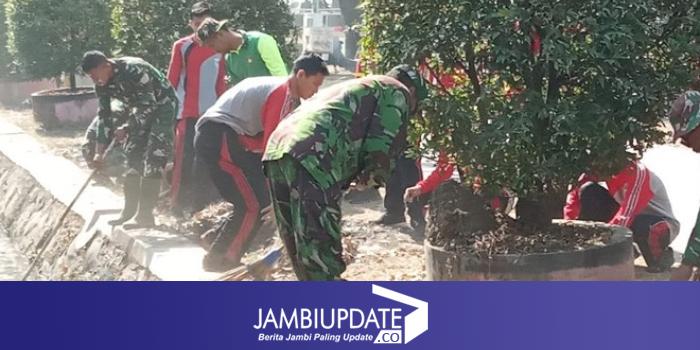 JAMBIUPDATE.CO, DEMAK - TMMD Reg ke 105 Kodim 0716/Demak di Desa Kalikondang Kecamatan Demak Kabupaten Demak ajak murid-murid SMAN 3 Demak untuk bersama-sama membersihkan lingkungan sekolah,Jumat(26/7).