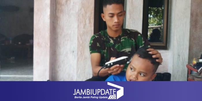 JAMBIUPDATE.CO, DEMAK - Luar biasa pengaruh sosok TNI di Desa Kalikondang, Kecamatan Demak Kota, selama pelaksanaan TMMD Reguler ke-105 di desa setempat. Mungkin saking kesengsemnya sama sosok Tentara, anak-anak minta cukur model Pak Tentara.