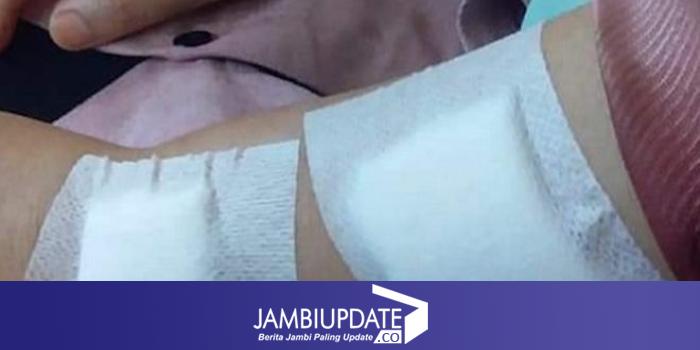 Karena sayatan yang cukup dalam dan lebar itu, korban mendapat 9 jahitan dalam pengobatan yang dilakukan di RSUD IA Moeis sesaat setelah kejadian.
