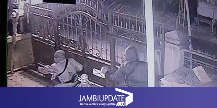 Tiga pelaku terlihat secara bergantian masuk rumah dengan cara naik tembok dan merusak pintu pagar depan.