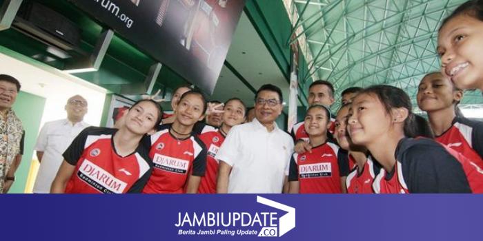 MELIHAT ATLET DAN MESS DJARUM: Dewan penasehat PB Djarum Yan Hariyadi bersama Kepala Staf Kepresidenan Moeldoko staf kepresidenan dan Direktur Program direktor Bhakti Olahraga Djarum Yoppy Rosimin saat berbincang dengan atlet hasil audisi badminton di Gor Djarum, Jati, Kudus, Jawa Tengah, kemarin. (Donny/Jawa Pos Radar Kudus, DONNY SETYAWAN/RADAR KUDUS)