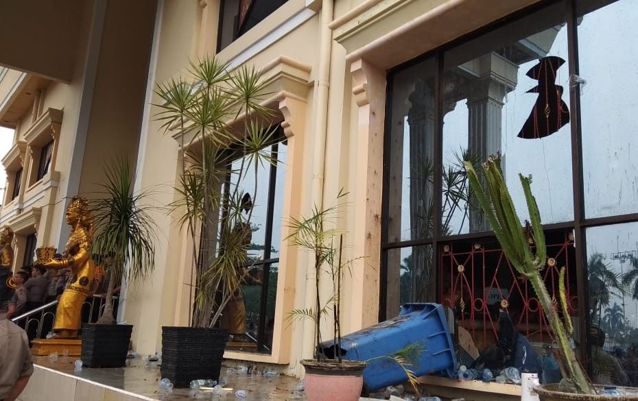 Massa dengan aparat kepolisian yang bertugas pun terlibat aksi saling kejar. Tak hanya itu, sejumlah gedung DPRD Provinsi Jambi pun tampak pecah akibat terkena lemparan.