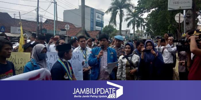 iklan Puluhan mahasiswa yang tergabung dalam Pergerakan mahasiswa Islam Indonesia (PMII) Senin (30/9) mendatangi Mapolda Jambi.