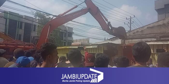 Pantauan lokasi kejadian, para pemilik bangunan menghadang Polisi dan pengadilan negeri Jambi, bahkan dalam pengrobohan dengan menggunakan alat berat di warnai aksi penolakan.