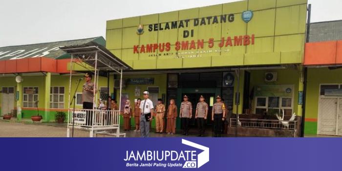 JAMBIUPDATE.CO, JAMBI - Ada yang berbeda dari pelaksanaan upacara bendera di SMAN 5 Kota Jambi pagi ini, Senin (14/10), pada upacara bendera kali ini yang bertindak sebagai inspektur upacara (irup) bukan kepala sekolah atau guru, melainkan Kapolda Jambi Irjen Muchlis AS.