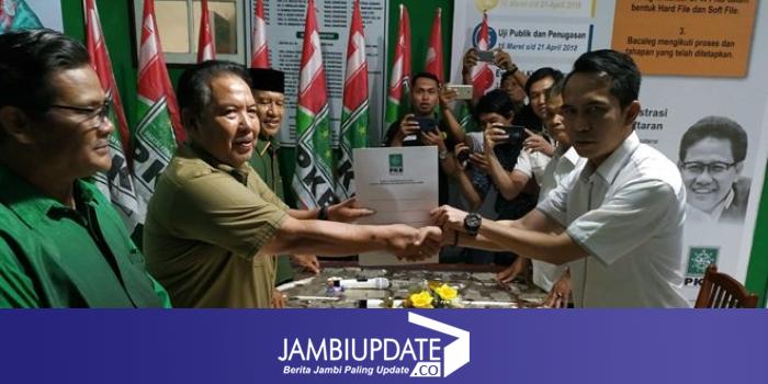 JAMBIUPDATE.CO, JAMBI- Bupati Merangin Al Haris mengutus timnya mengambil formulir penjaringan Partai Kebangkitan Bangsa (PKB) di pematang sulur, Telanaipura, Kota Jambi sore ini, Kamis (17/10).