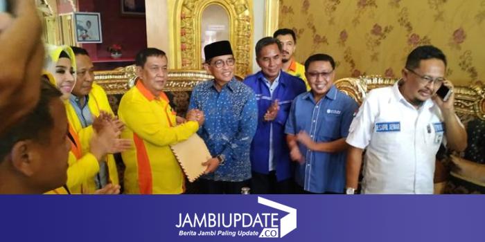 JAMBIUPDATE.CO, JAMBI- Kandidat calon Gubernur Jambi, H. Bakri mengembalikan formulir penjaringan partai Berkarya, Selasa (22/10). Kedatangan Bakri di sambut Ketua DPW Berkarya, Ambiar Usman dan jajaran panitia penjaringan.