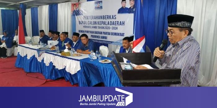 Kandidat petahana ini disambut langsung Ketua DPD Demokrat Provinsi Jambi Burhanuddin Mahir (Cik Bur). Ada juga sejumlah pengurus dan panitia penjaringan yang di ketuai Saiful Hasibuan.