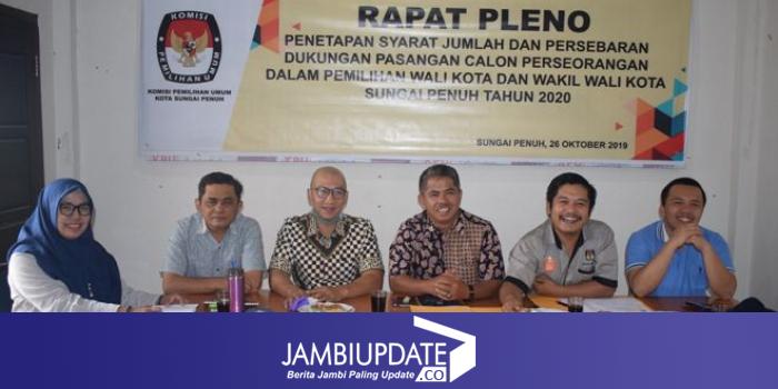 JAMBIUPDATE.CO, SUNGAIPENUH - Komisi Pemilihan Umum (KPU) Kota Sungai Penuh, telah melaksanakan rapat pleno penetapan syarat jumlah dan persebaran dukungan pasangan calon perseorangan dalam pemilihan Walikota dan Wakil Walikota Sungai Penuh Tahun 2020.