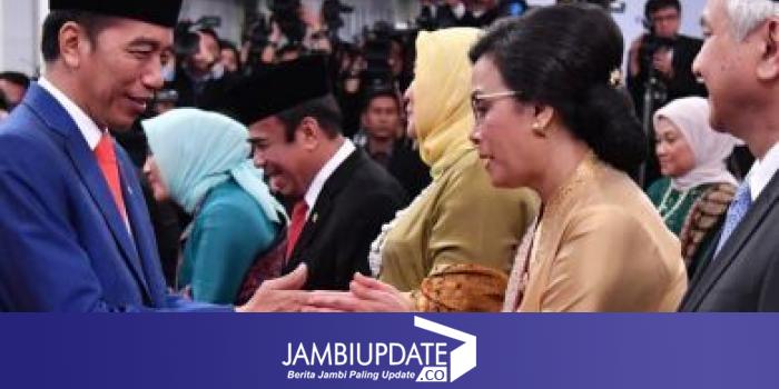 Menteri Keuangan Sri Mulyani mendapat ucapan selamat dari Presiden Jokowi usai pelantikan menteri. (Net)