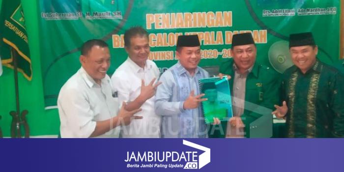 Orang nomor satu di Kabupaten Merangin itu didampingi sejumlah tim pemenangannya disambut oleh Ketua DPW PPP Provinsi Jambi, Evi Suherman, Tim Penjaringan, dan jajaran pengurus lainnya.