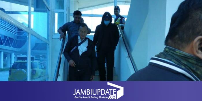 Zumi Zola Tiba di Jambi, dengan pengawalan ketat KPK serta petugas Lapas Sukamiskin Bandung. Mantan gubernur Jambi itu datang dengan pakaian serba hitam.