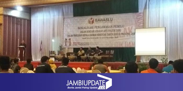 JAMBIUPDATE.CO, JAMBI - Jelang perhelatan Pilkada serentak 2020 mendatang, Badan Pengawas Pemilihan Umum (Bawaslu) Provinsi Jambi menggelar sosialisasi pengawasan dalam seminar gerakan anti politik uang, Selasa (12/11).
