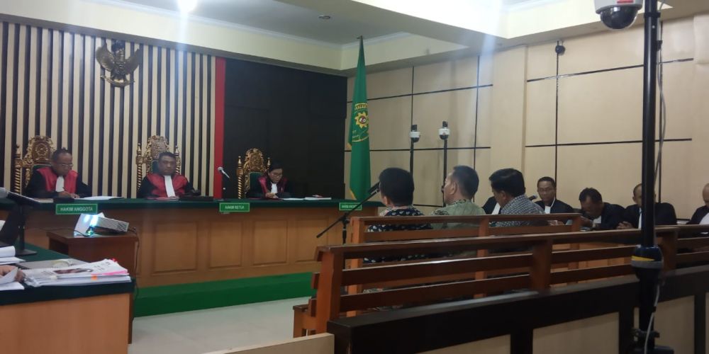 Sidang kasus Suap uang ketok palu RAPBD provinsi Jambi yang beragandakan pembacaan surat dakwaan terhadap ketiga tersangka, yaitu, Zainal Abidin, Muhammadiyah dan Efendi Hatta di pengadilan Tipikor Jambi. (Rudi / Jambiupdate)