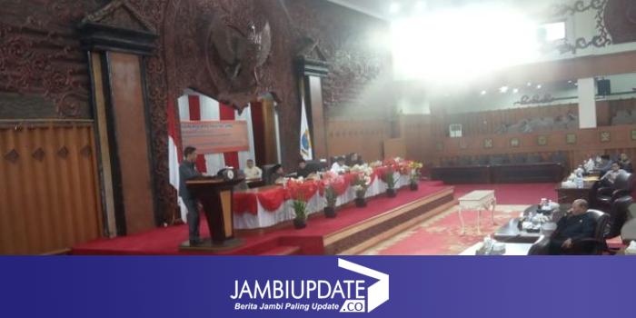 Rapat Paripurna dipimpin oleh ketua DPRD Provinsi Jambi, dan dihadiri Gubenur Jambi, unsur forkompinda serta para kepala OPD di lingkup Pemprov Jambi. Sebelumnya agenda paripurna hari ini dijadwalkan dimulai pukul 13.30 WIB, namun molor dan baru dibuka pada pukul 14.30 WIB.