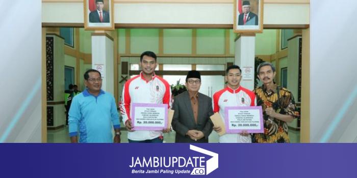 JAMBIUPDATE.CO, JAMBI- Dua atlet Polo Air Jambi Yusuf Budiman dan Rian Rinaldo mendapatkan bonus tambahan. Bonus itu di berikan Gubernur Jambi Fachrori Umar setelah keduanya berhasil meriah medali emas usai memperkuat Tim Nasional Indonesia di SEA Gemes, Filipina.