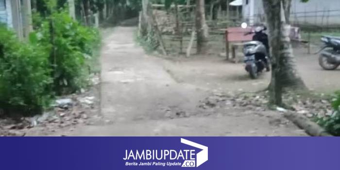 Jalan Rabat Beton di Mangun Jayo Bungo dipertanyakan warga. (FERDIAN/JU)