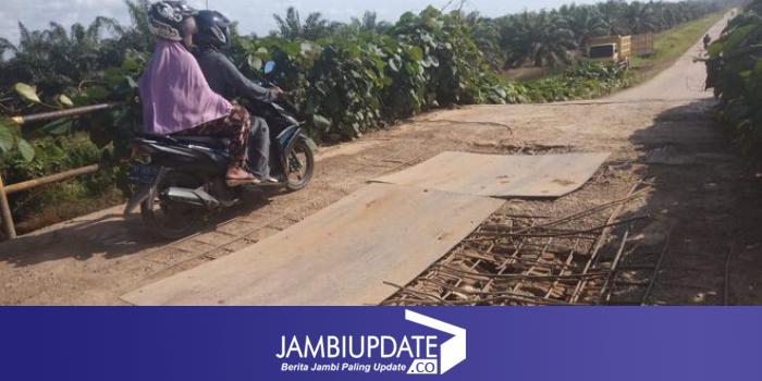 JAMBIUPDATE.CO, MUARASABAK - Kondisi jembatan Cinta Kasih yang berada di jalan lintas Kecamatan Kuala Jambi - Muara Sabak Barat, Kabupaten Tanjabtim, rusak parah. Pasalnya, jembatan perbatasan antara Kelurahan Kampung Singkep dengan Kelurahan Rano tersebut, sudah nyaris jebol.