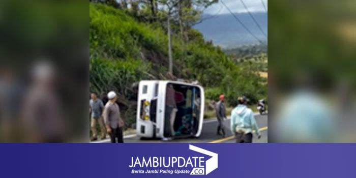 JAMBIUPDATE.CO, KERINCI - Akibat tak sanggup mendaki di tanjakan, Mobil Bus yang mengangkut siswa Pesantren Darun Najjah, Desa Bubun Duri, kecamatan Gunung Tujuh, Kerinci, terguling.