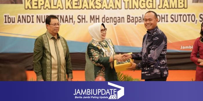 JAMBIUPDATE.CO, JAMBI - Bertempat di Ballroom Swiss Bell Hotel Jambi, Bupati Tebo, H Sukandar, S.Kom, M.Si, Rabu (15/1) malam kemarin menghadiri acara pisah sambut Kepala Kejaksaan Tinggi Jambi dari Andi Nurwinah, SH ,MH kepada Yudhi Sutoto, SH.