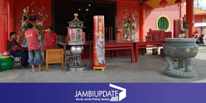 Pantauan jambiupdate.co, sejumlah lilin berwarna merah berukuran besar hingga kecil tampak sudah tegak dan dihidupkan di depan patung-patung dewa di sudut ruangan.