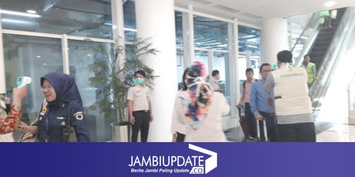 pengecekan suhu tubuh penumpang yang tinggi menggunakan alat deteksi suhu tubuh (infra red) dan surveilance syndrome kepada penumpang serta pemeriksaan dokumen penerbangan terutama penumpang dari Negara terjangkit. Menurut informasi Ali Isha Wardhana, Kepala KKP Kelas III Jambi, berdasarkan hasil pengecekan yang dilakukan hingga saat ini belum ditemukan penumpang dengan suhu diatas 38°C.
