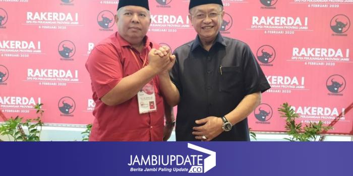 Pada acara Rakerda PDIP Provinsi Jambi kemarin, Safrial tampak mengumbar kemesraan dengan Bupati Sarolangun Cek Endra.
