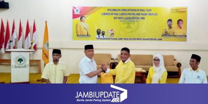 JAMBIUPDATE.CO, JAMBI- Bakal Calon Gubernur (Bacagub) Jambi, Sy Fasha, mendatangi DPD I Partai Golkar Provinsi Jambi untuk pengembalian formulir pendaftaran kandidat, Kamis (13/2).
