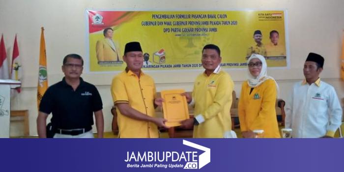 Kedatangan Sukandar didampingi oleh puluhan tim pemenangannya, disampaikan oleh Sekretaris Tim Penjaringan DPD I Golkar Provinsi Jambi Gordon L Tobing.