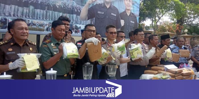 JAMBIUPDATE.CO, JAMBI - Barang Bukti narkotika jenis sabu seberat 15 kg dan 29 Ganja dimusnahkan kerena perkara sudah sampai ke tangan Jaksa Penuntut umum (JPU) barang bukti tersebut merupakan tangkapan Subdit III Ditresnarkoba Polda Jambi dalam waktu dua bulan terakhir.