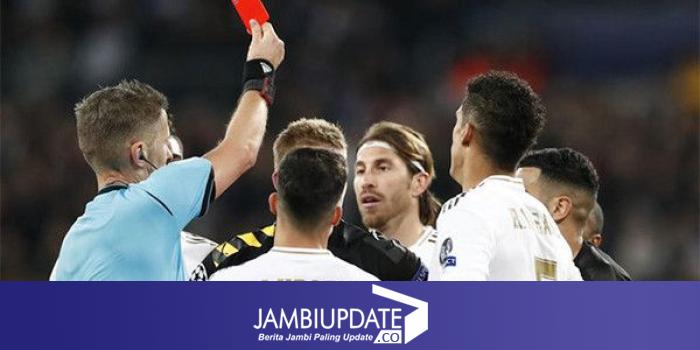 JAMBIUPDATE.CO, MADRID - Kapten Real Madrid Sergio Ramos kena kartu merah pada menit ke-86, dalam leg pertama 16 Besar Liga Champions duel Real versus Manchester City di Santiago Bernabeu, Kamis (27/2) dini hari WIB.