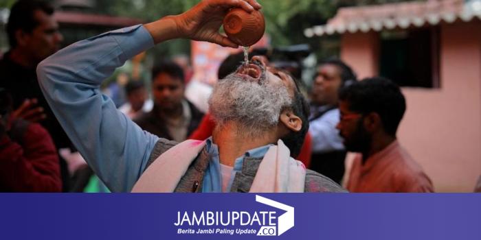 JAMBIUPDATE.CO, NEW DELHI- Ketua kelompok Akhil Bharat Hindu Mahasabha (Seluruh India Hindu Union) mengadakan acara pesta minum air kencing sapi pada hari ini, Sabtu (15/3) di New Delhi. Acara ini diklaim sebagai upaya menghentikan wabah virus corona.