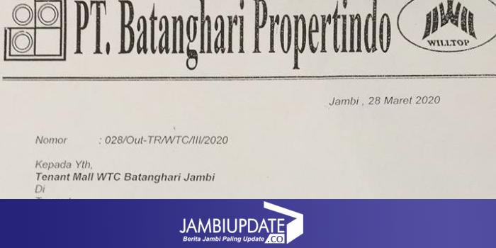 Sedangkan pada surat yang dilayangkan berkop Batanghari Propertindo (Wiltop) menyebutkan sehubungan dengan masih banyak pengunjung yang memerlukan kebutuhan pokok sehari-hari maka kani infokan mall WTC Batanghari Jambi buka seperti biasa yaitu dari Jam 11.00 WIB s.d 20.00 WIB setiap harinya. (aba)
